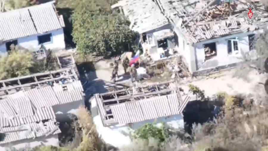 Durante los combates, las fuerzas rusas tomaron el control de más de 10 kilómetros cuadrados de territorio. En las imágenes se puede ver a las unidades de asalto izando la bandera de Rusia en el poblado.
