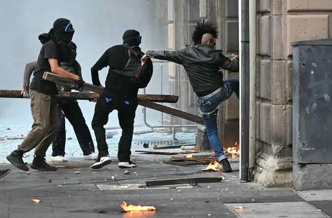 Los integrantes del ‘bloque negro’ se enfrentaron de manera violenta con la Policía, lanzándoles petardos y piedras. También se reportaron lanzamientos de artefactos explosivos y bombas molotov. Según los medios locales, hubo 14 heridos y algunos tuvieron que ser trasladados a hospitales.
