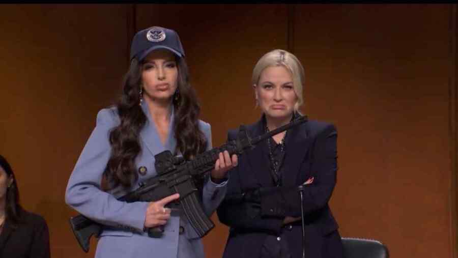 La actriz Amy Poehler interpretó a Bondi en un ‘sketch’ sobre su audiencia en el Senado la semana pasada en la que se negó a responder preguntas y arremetía contra los senadores que la interpelaban. Por su parte, Tina Fey interpretó a Noem portando un rifle de asalto y una gorra de béisbol.